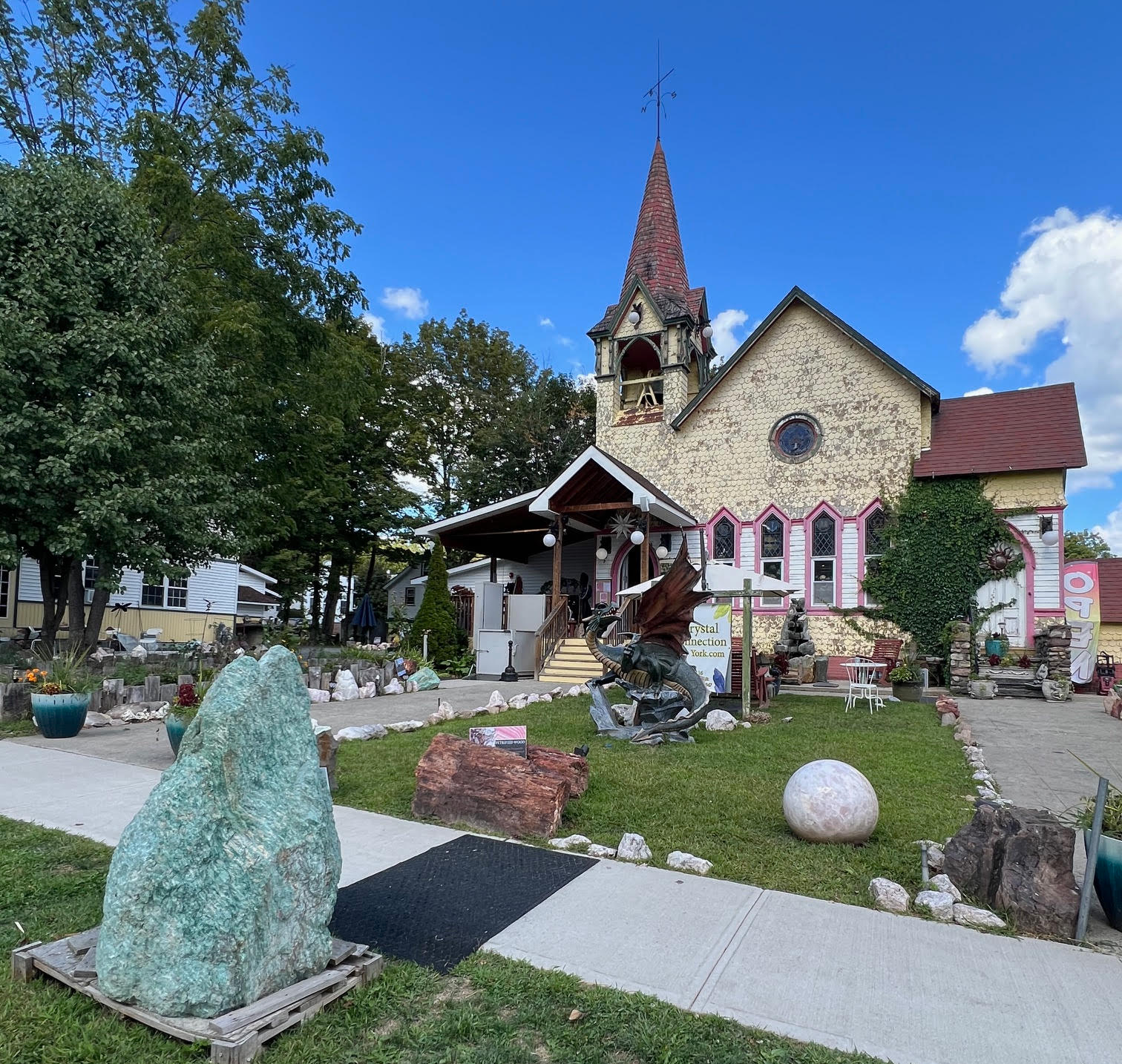 We also visited The Crystal Connectionโa historic church transformed into a crystal shop. I'd seen it on TikTok and knew it was a must-visit, but being there in person was even more magical. The outdoor areas were lined with giant rose quartz, and inside we saw incredible treasures like amethyst coffee tables and even a throne seat made of amethyst. The basement held a salt cave and healing center, making the whole place feel like a sanctuary