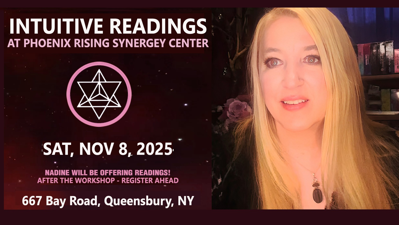Nadine will be offering intuitive readings after the Crystal Grid, Oracle Card, Sound Bath Experience.